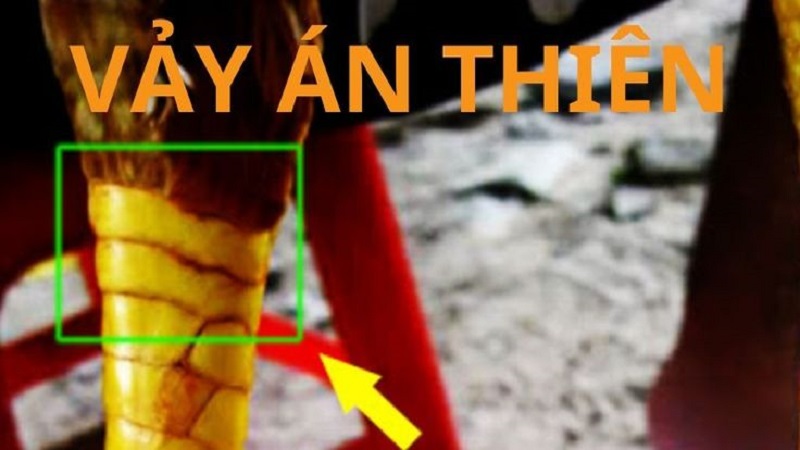 Quan sát ở dưới sát đầu gối có một miếng vảy lớn, nằm ở vị trí cao nhất trên chân của gà chiến được gọi là vảy án thiên. Nếu chiến binh sở hữu đặc điểm vảy này, cho biết khả năng tránh đòn cực tốt. Tham gia trận giao chiến, gà vảy án thiên có sức bền cao, ra đòn cực chuẩn và hạ gục đối thủ tích tắc.